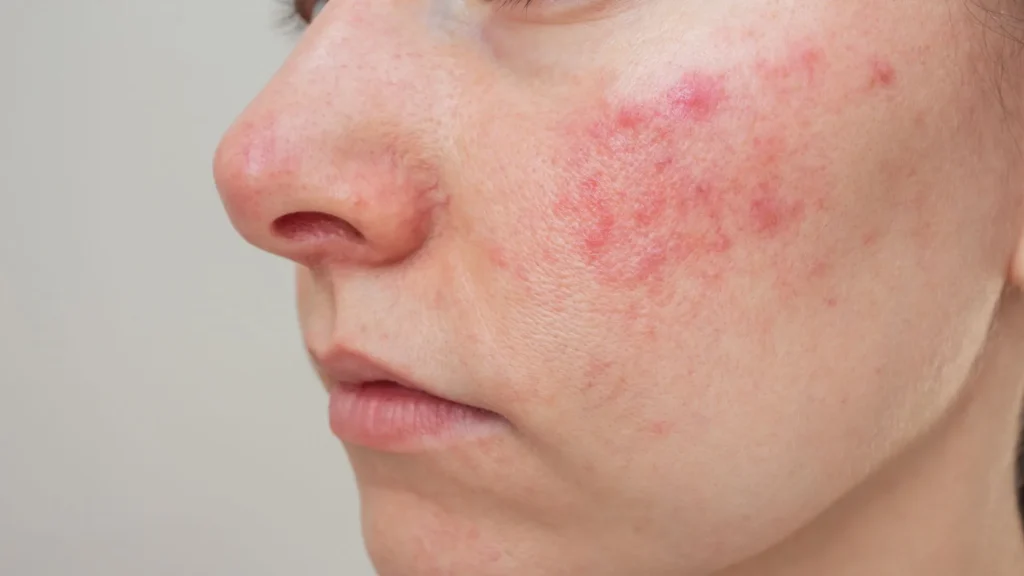 A rosácea é uma doença inflamatória crônica da pele que se manifesta, principalmente, no centro da face. Porém, ela pode se expandir para as bochechas, nariz, testa e queixo e, raramente, para a região dos olhos.